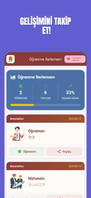 Öğrendiğiniz kelimeleri ve başarılarınızı arkadaşlarınızla paylaşın, gelişiminizi takip edin ve motivasyonunuzu yüksek tutun!