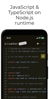 It lets you run JavaScript and TypeScript code and scripts offline on your phone, without any internet connection or server setup.