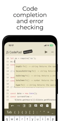 - Customised keyboard with special keys and shortcuts for JavaScript and TypeScript