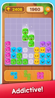 Adventure into a cute puzzle world with soft jelly blocks with funny faces right now!