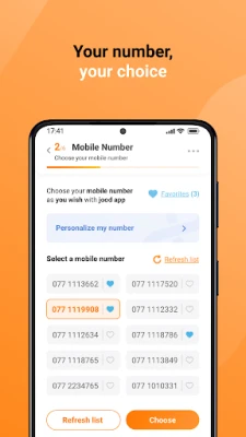 To experience our innovative digital journey, simply download the Orange jood app and sign up with your preferred method (email, social media, or an Orange mobile number). To purchase a new prepaid line, you can browse our offering of specially designed lines with many attractive features. You will also have the option of choosing your new mobile number from a list of special numbers or you can search for a specific number you have in mind.