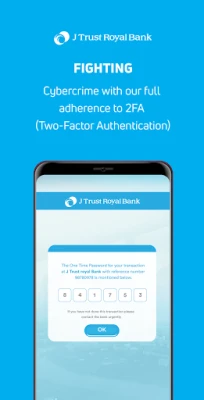JTRB Authenticator works as two-factor authentication (2FA), providing a total of 3-layer security: (1) User name & Password, (2) One-Time-Password "OTP", as a second security layer when logging in JTR Connect and (3) transactional OTP, as the third layer, when processing your payments on JTR-Connect.