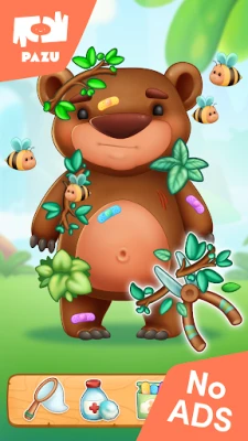 KIds! are you ready to enter an exciting and funny adventure in the deep of the jungle? meet cute and fluffy animals, help them in so many creative ways, become a vet and explorer, roam the storyline while taking care of the hungry bear, clean the environment, rescue the wild animals and mostly, enjoy a fun, easy, educational game, with the amazing art style, lovely animations and of course our signature PAZU values and attention.