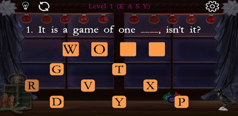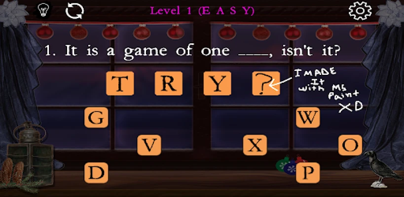 This game is a simple word puzzle game, you will get an incomplete sentence, riddle or maybe something unique and you will have to find the missing part and complete it, oh and if you are clever I have added some good stuff for you to find in-game.