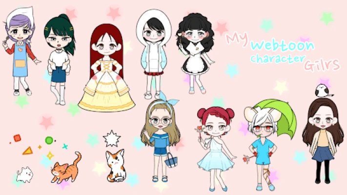 Webtoon Character Girls is a dress up game that makes K-pop characters.