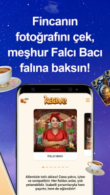 • Kaave yorumcuları fallarını yorumlarken, Falcı Bacı’nın Bahçesi oyunu ile eğlenceli zaman geçir ve sana özel hediyelerden kazan.