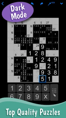 The game includes zoom for easier solving of large puzzles, as well as helpful features such as showing possible sum combinations in a block, showing the sum remainder of a block, and using pencilmarks to make temporary placement of numbers in the grid.