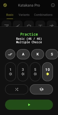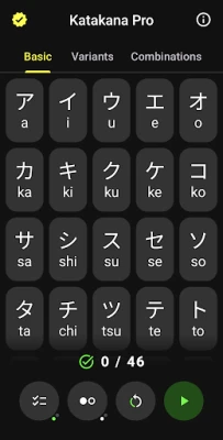 Katakana Pro provides several tools and a game-like atmosphere to help you attain mastery of katakana.