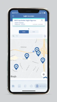 Anlaşmalı kurumları harita üzerinde görüntüleyebilir,