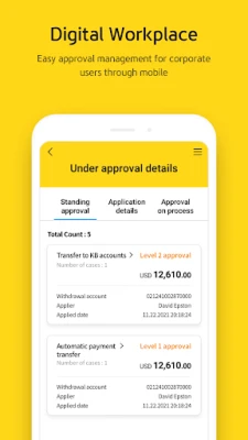 - Transfer : To KB Bank/To Other Banks/Currency Exchange/Overseas Transfer