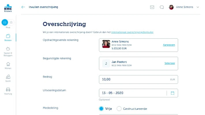 - Realtime overschrijvingen doen tussen je eigen rekeningen en overschrijven naar rekeningen bij andere banken