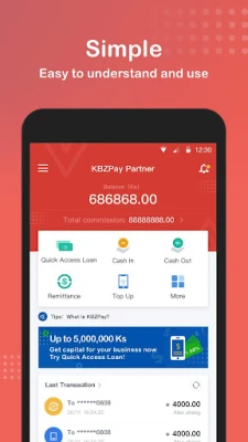 KBZ Bank brings you the KBZPay Partner App - enabling you to assist your customers with their transaction and cash/payment needs and to help you manage your Merchant or Agent Account.
