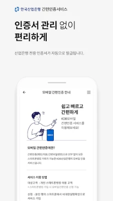 - 모바일간편인증 서비스 가입 고객은 스마트폰뱅킹에서 간편인출 신청 후 현금카드 없이 산업은행 자동화기기에서 소액인출(1일 100만원 이내)이 가능합니다.
