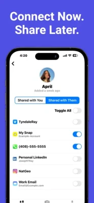 Privacy. Perfected. Share nothing or everything, anytime, with KeepUp's unique toggle-to-share feature which puts sharing social media accounts or personal information just one tap away.