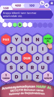 - Kelimeyi bulmakta zorlandığınızda YARDIM ve soru DEĞİŞTİR Bonuslarından yararlanabilirsiniz.