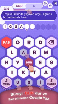 - Kelimeyi bulduysanız hemen süreyi "DUR"durun ve Tahmin İbresi bitmeden cevabı girin.