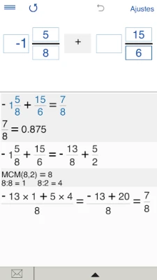 Ondalık sayılar kesirler dönüştürmek için, seçin "Kesirler", giriş kesir veya karışık numarası ve "=" butonuna tıklayınız.