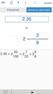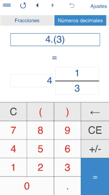 Bir kesir ondalık dönüştürmek için, seçin "Ondalık sayılar", giriş ondalık kesir ve "=" butonuna tıklayınız.