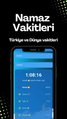 Türkiye ve 80'den fazla ülke için namaz vakitleri, kıble pusulası, günlük hadisler, Esmaül Hüsna, dualar, sureler, zikir ve dijital tesbih özellikleri bir arada.