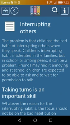 The app includes articles about all common children's problems and diagnoses. These articles help you see the problem in a new light - as a skill the child needs to learn in order to overcome the problem.