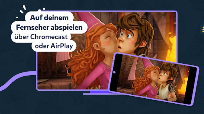 Tablet oder Handy ist dir zu klein? Du möchtest lieber gemeinsam als Familie oder mit Freunden Lieblingsserien oder Filme schauen? Mit Chromecast kannst du die Videos auf den großen Bildschirm streamen. Außerdem gibt es die KiKA-App auch als HbbTV-Angebot am Smart-TV. So bringst du das Kinderprogramm direkt in dein Wohnzimmer.