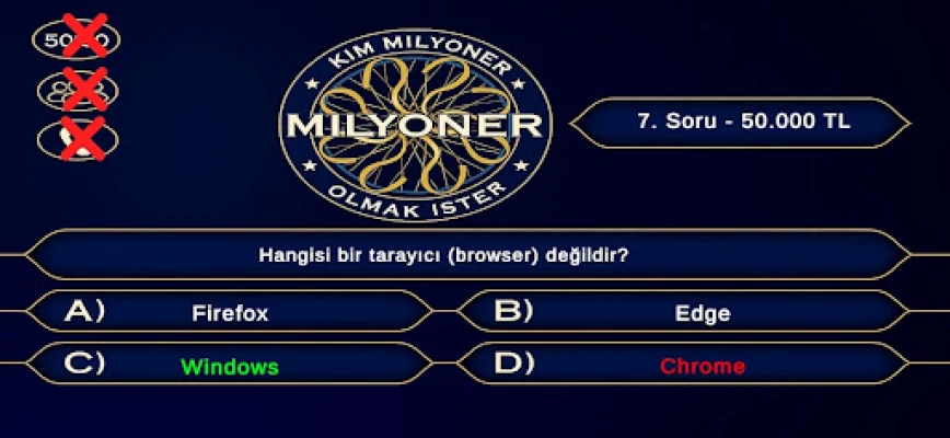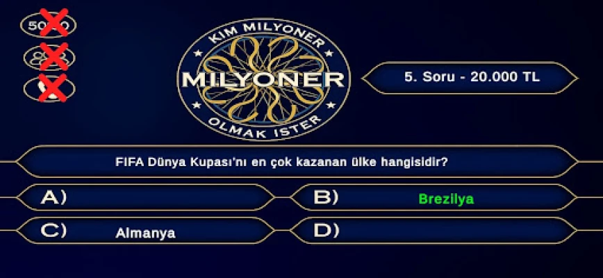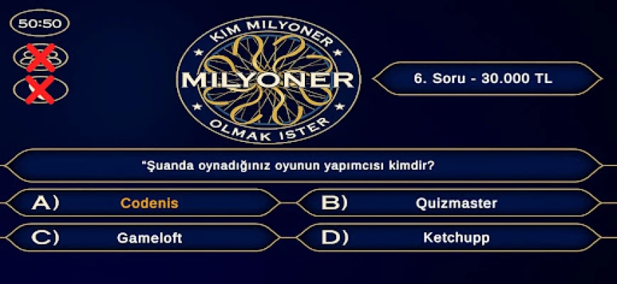 "Kim Milyoner Olmak İster?" televizyon yarışmasından esinlenen bu oyun, bilgi birikiminizi ve zekânızı sınayacağınız, birbirinden farklı zorluk seviyelerindeki soruları doğru yanıtlamaya çalıştığınız heyecan dolu bir bilgi yarışmasıdır.