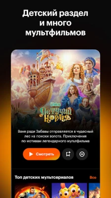 Загружайте кино заранее, чтобы смотреть фильм вместе даже когда нет сети. В дороге выручат мультики без интернета, фильмы без интернета и офлайн-доступ к сериалам. Скачать фильмы на телефон просто — ищите специальный значок на странице того или иного кино. А ещё вы можете не только скачать фильм, но и сериал.