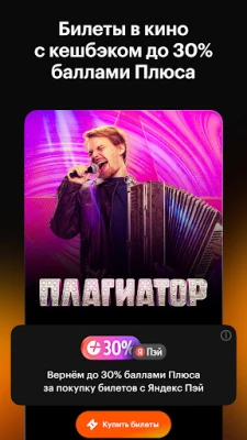 • Бронирование мест и покупка билетов в кинотеатры онлайн.