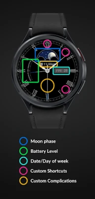 Bu klasik ve özelleştirilebilir Saat Yüzü ile akıllı saatinizin zarafetini yükseltin. Sizin için mükemmel Saat Kadranını oluşturmak için ibreleri, kadranları, ay evresini, takvimi ve pil komplikasyonlarını seçin.