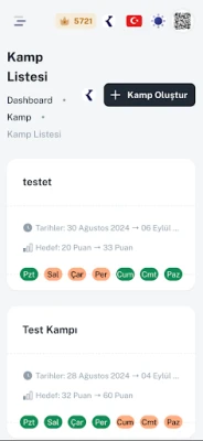 Kamp Sistemi: Günlük çalışma planı oluştur, ilerlemeni takip et.
