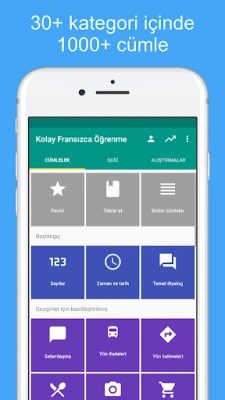 1000+ fransızca cümle ve kelimeleri öğrenin pro sürüm ile aşagıdaki kategorilerle: