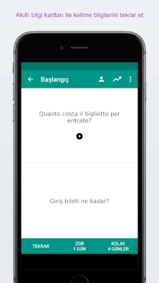 *Quiz ve Bilgi Kartları ayarlarını düzenle italyanca -> Türkçe, Türkçe -> italyanca