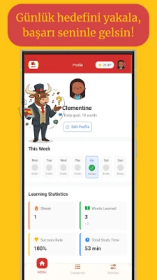 Kendi gelişiminizi anlık olarak takip edin. Çalışma süresi, öğrendiğiniz kelimeler ve tamamlama oranlarınız detaylı grafiklerle görüntülenir.
