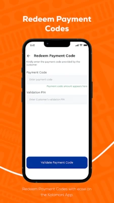 With the Kolomoni app, you can redeem a payment code on behalf of customers, making it easy for them to access funds quickly.