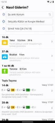 Otobüs, tramvay ve bisiklet dahil tüm ulaşım seçeneklerini anında görüntüleyin.