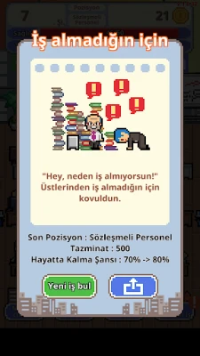 "Kovulma!", Parası olmayan, hiçbir bağlantısı olmayan bir karakteri oynayabileceğiniz bir hayatta kalma oyunudur. Onu "stajyer" den "cumhurbaşkanı" kadar şirket merdiveni tırmanmaya yapmak gerekir.