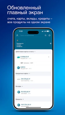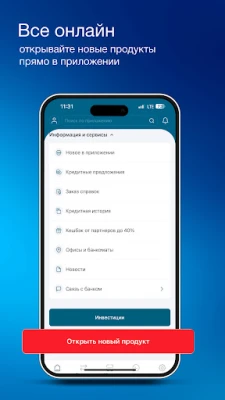 • Операции по кредитам: полная информация по всем действующим кредитам и предварительно одобренных кредитных предложениях, полное и частичное погашение