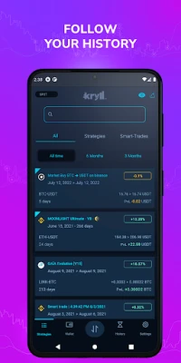 Our new mobile app will check your strategies, results and history from everywhere, with a brand-new graphical interface the new kryll.io app is easier to use than ever.
