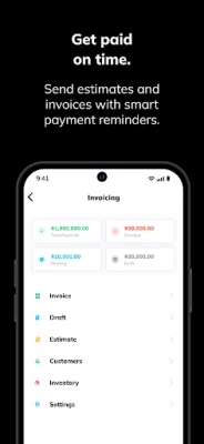 - Send estimates and invoices easily to get paid quicker.