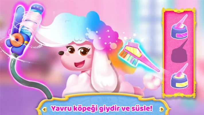 Yavru köpeğe spa bakımı yapalım! Köpekçiği sabunlayıp balonlarla kapla, sonra da durulamak için güzelce yıka. O da ne? Köpük mü kalmış? Duş başlığını sürükle ve köpükleri durula!