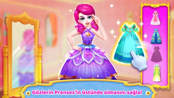 Prenses'in giyinme odasında çok şık elbiseler var: Parlak sarı balık elbise, pembe balon etek... Balon etek yakışmış mı? Lütfen giydir ve dene!