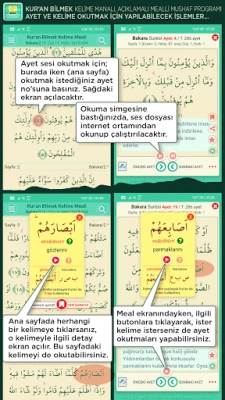 - Her ayetin tüm kelimelerini Türkçe karşılıklarıyla, listeleyebilir ve isterseniz paylaşabilirsiniz