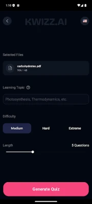 * Instant Quiz Generation: Upload any study material and watch as AI creates comprehensive quizzes in seconds