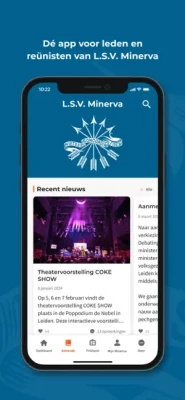 De Leidse Studentenvereniging Minerva is de oudste studentenvereniging van Nederland, opgericht in 1814. De app voor de Leden biedt onder andere een platform om elkaar te bereiken via de prikbordfunctie. Daarnaast vind je op deze app het laatste nieuws, het ledenbestand, de jaaragenda en nog veel meer.