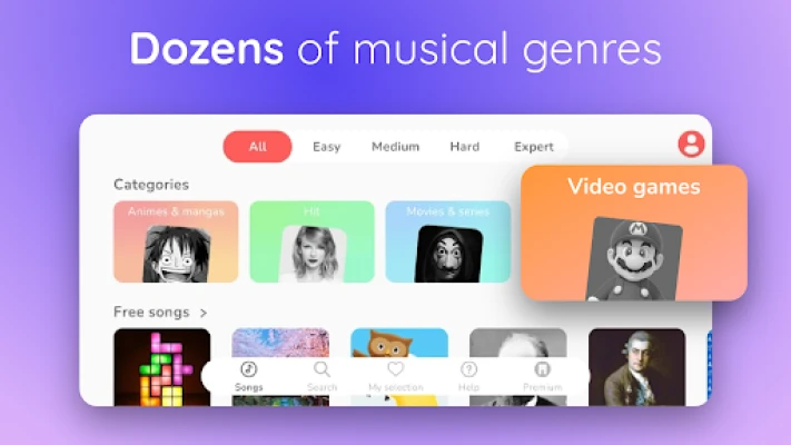 🎶 More than 3000 songs of all genres (rock, jazz, movies & TV, classical music, anime & manga, cartoons, video games ...) and for all skill levels.