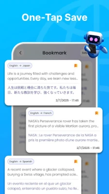 - Save & Reuse: Bookmark frequently used phrases and access translation history anytime.