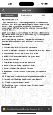 Each attendee can download the free Lead Retrieval App from here and get it activated by scanning their own badge for an event.