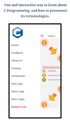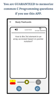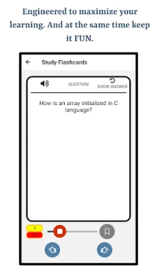 The app will help you learn the correct pronunciation of terminologies used in C Programming Language using English language. Following are the main features of this app 1. Supports pronouncing C Programming Language terminologies in English Language 2. Uses Text to Speech Engine for Audio Functionality 3. Quizzes 4. Study Mode 5. Bookmarking Study Flashcards and Quiz Questions 6. Progress Indicators for Every Chapter 7. Visualization for Overall Progress