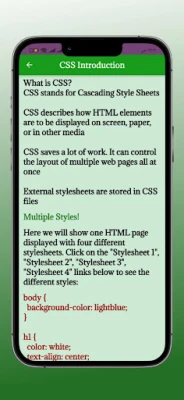 This amazing CSS Programming Learning app has amazing content such as CSS Programming Tutorials, CSS Programming Lessons, Programs, Questions & Answers and all that you need to either learn CSS programming basics or to become a CSS programming expert.