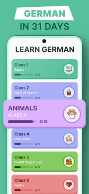 Learn how to speak German with lessons, courses, audio, activities and quizzes. Including German Alphabet, phrases, vocabulary, pronunciation, parts of speeches, grammar and many more. The App is divided in several classes to give you the easy and quick learning experience.